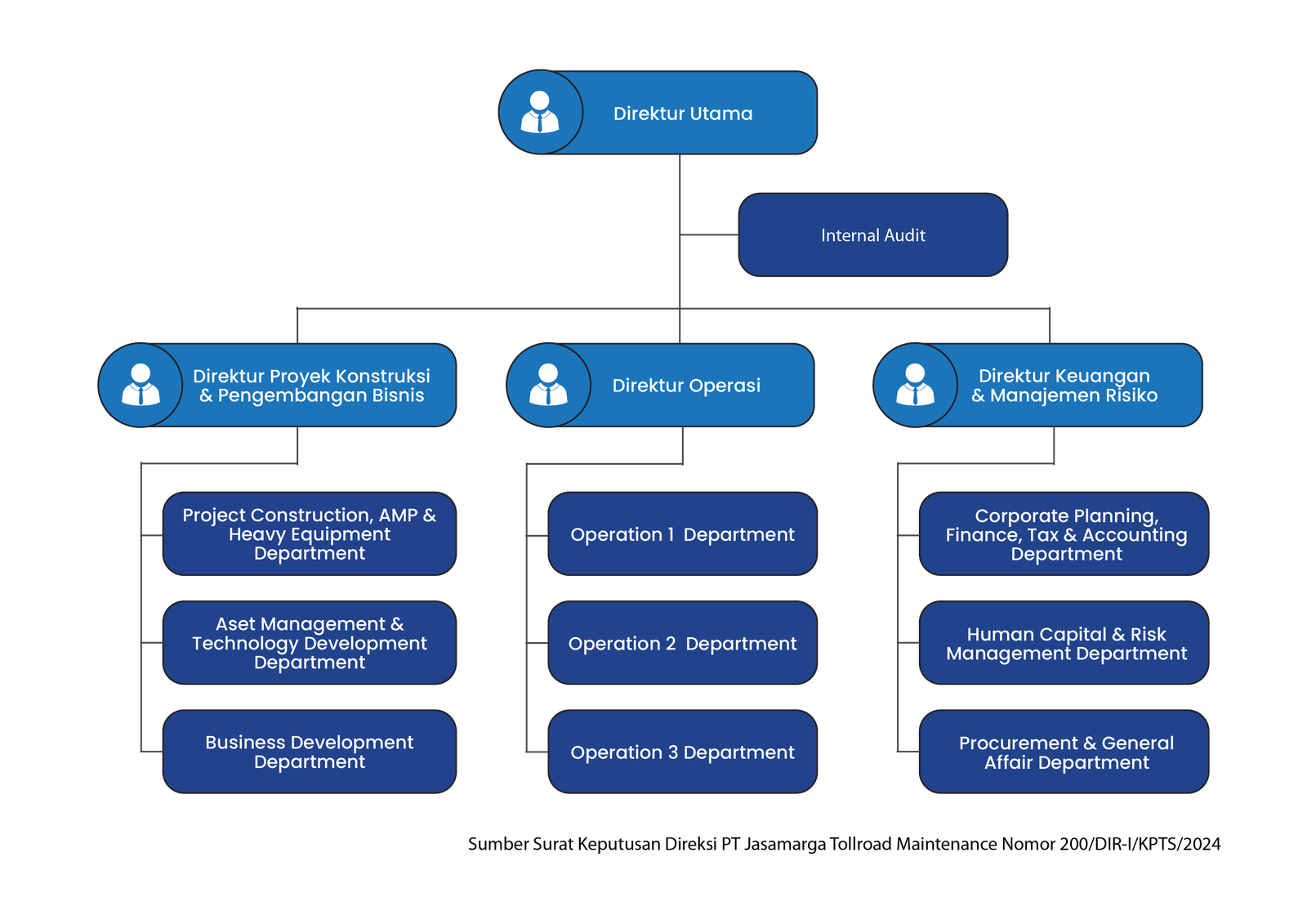 "Dengan standar dan kontrol yang kami miliki inilah jaminan kualitas pemeliharaan konstruksi dan jalan tol yang kami kerjakan dapat melampaui Standar Pelayanan Minimum (SPM) dari Jasa Marga sebagai perusahaan induk. Jasamarga Tollroad Maintenance juga menjalin kerja sama dengan mitra bisnis strategis yang memiliki kemampuan dan keahlian di bidangnya. Pun segala kegiatan pemasaran dilaksanakan oleh manajemen yang profesional, handal dan terpercaya. Sehingga seiring berjalannya bisnis, Perusahaan dapat selalu mengedepankan prinsip-prinsip “Good Corporate Governance” dalam proyek atau pekerjaan, baik yang sedang maupun yang akan digarap di masa depan."